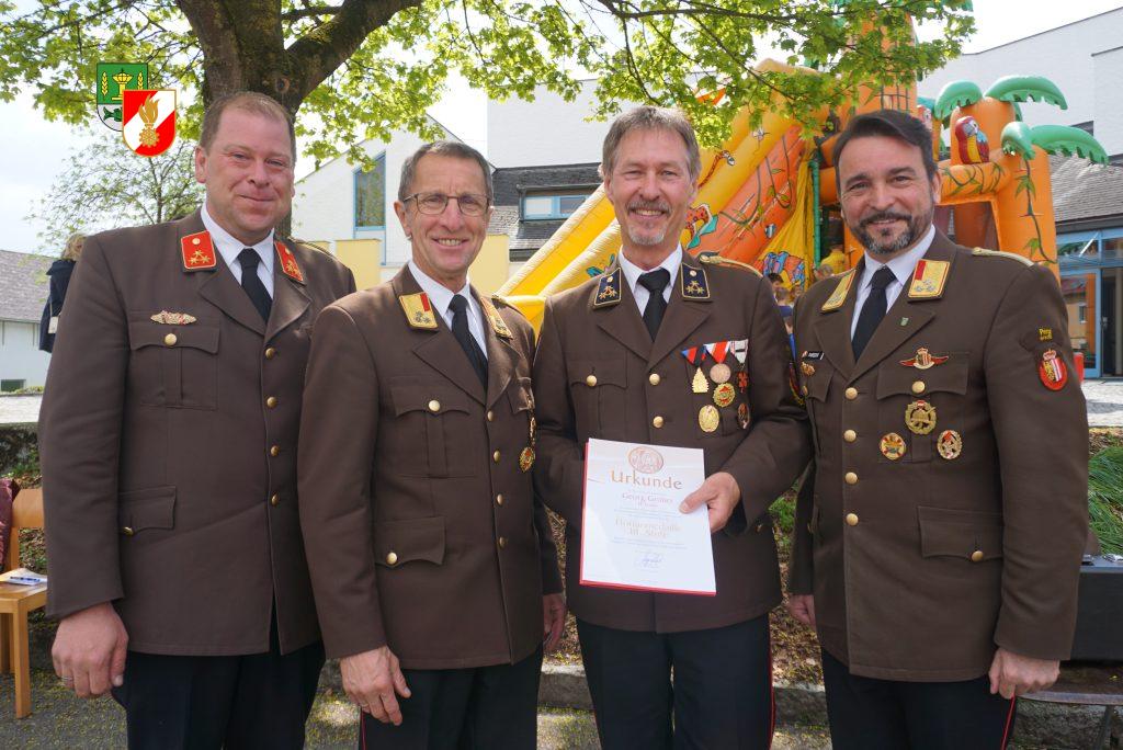Im Rahmen des Festaktes nutzte auch unser Bezirksfeuerwehrkommandant Eduard Paireder die Gelegenheit, um unseren Kameraden Georg Gruber die Florianmedaille des Oö. LFV 3. Stufe in Bronze zu verleihen. Wir gratulieren dazu recht herzlich!
