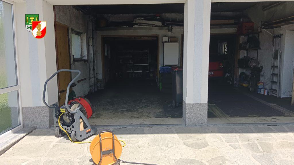 Bei Eintreffen wurde vom Einsatzleiter festgestellt, dass es sich um eine Rauchentwicklung in der Garage handelt. Ein Laubgebläse war in Brand geraten, es war aber kein weiteres einschreiten notwendig.