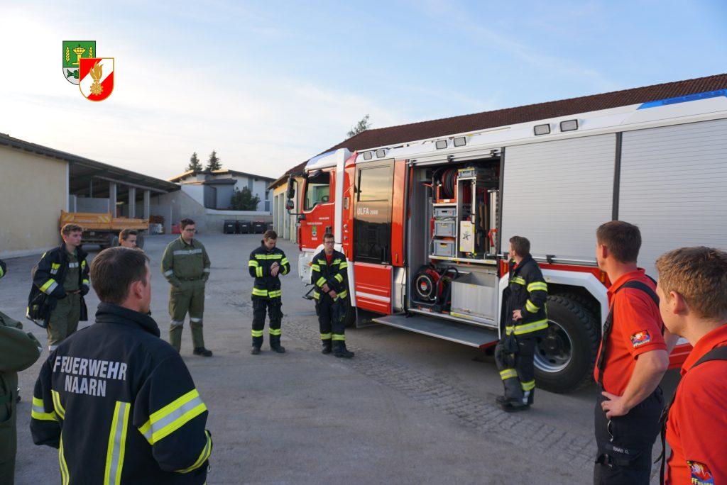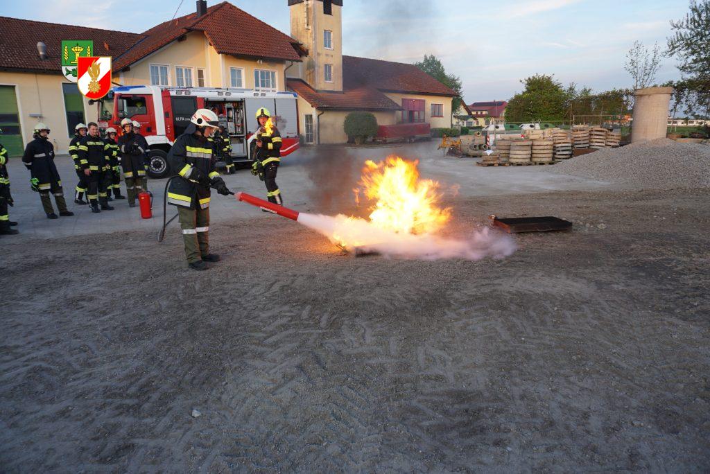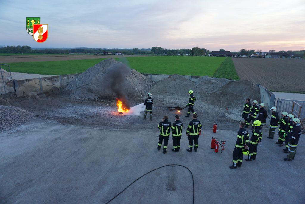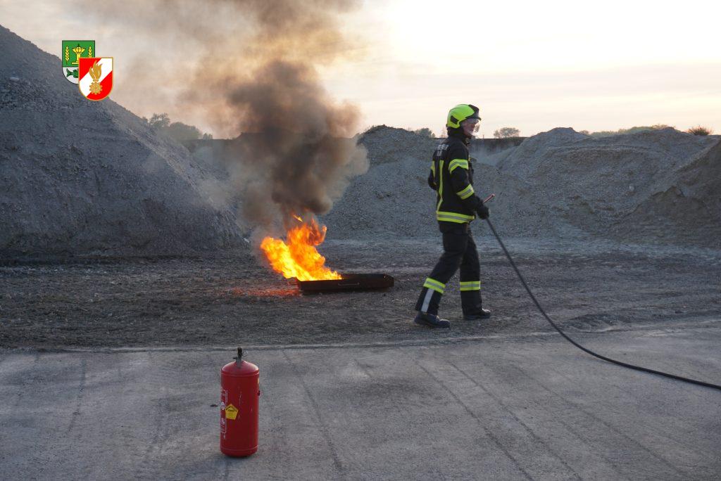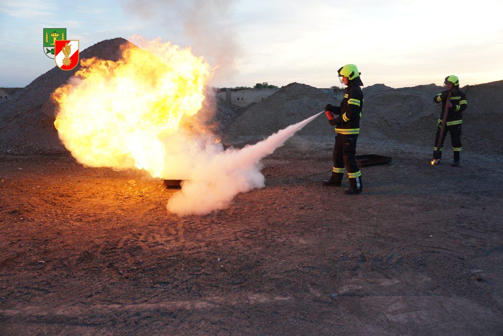 Die Gruppe 1 nutzte die Übung um den Umgang mit der CO2 Anlage zu üben. Dabei haben wir eine Brandtasse verwendet und einen Flüssigkeitsbrand simuliert. In der Praxis wurden danach noch weitere Handfeuerlöscher probiert und besprochen. Im letzten Teil der Übung zeigten wir den Kameraden wie mann Leichtschaum mittels Lüfter herstellen kann.