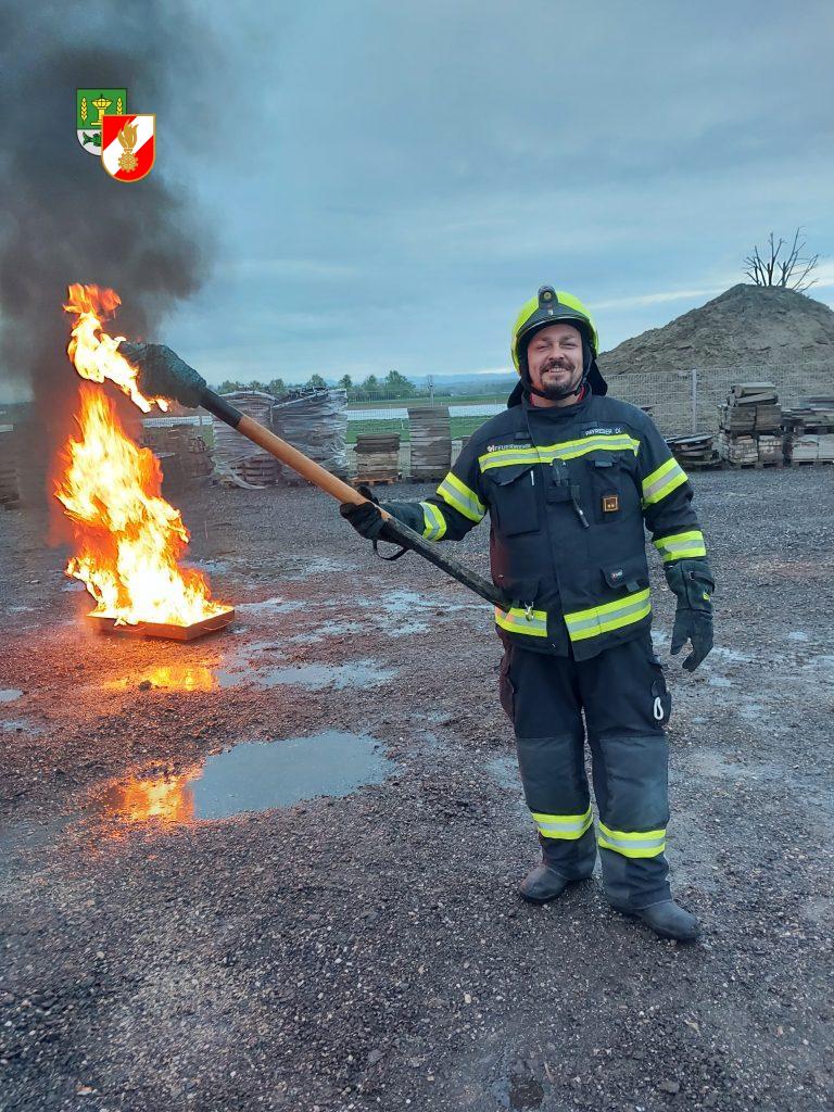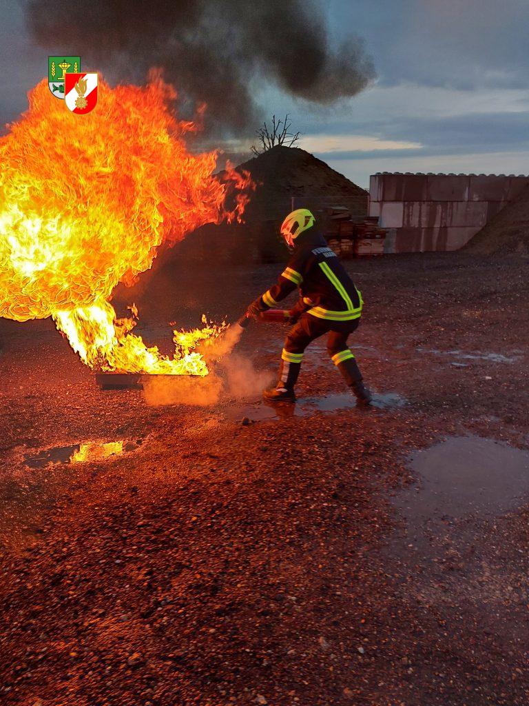 Gruppe zwei beschäftigte sich in der Gruppenübung mit dem Brand diverser Stoffe, deren Reaktion auf verschiedene Löschmittel und Löschversuche.