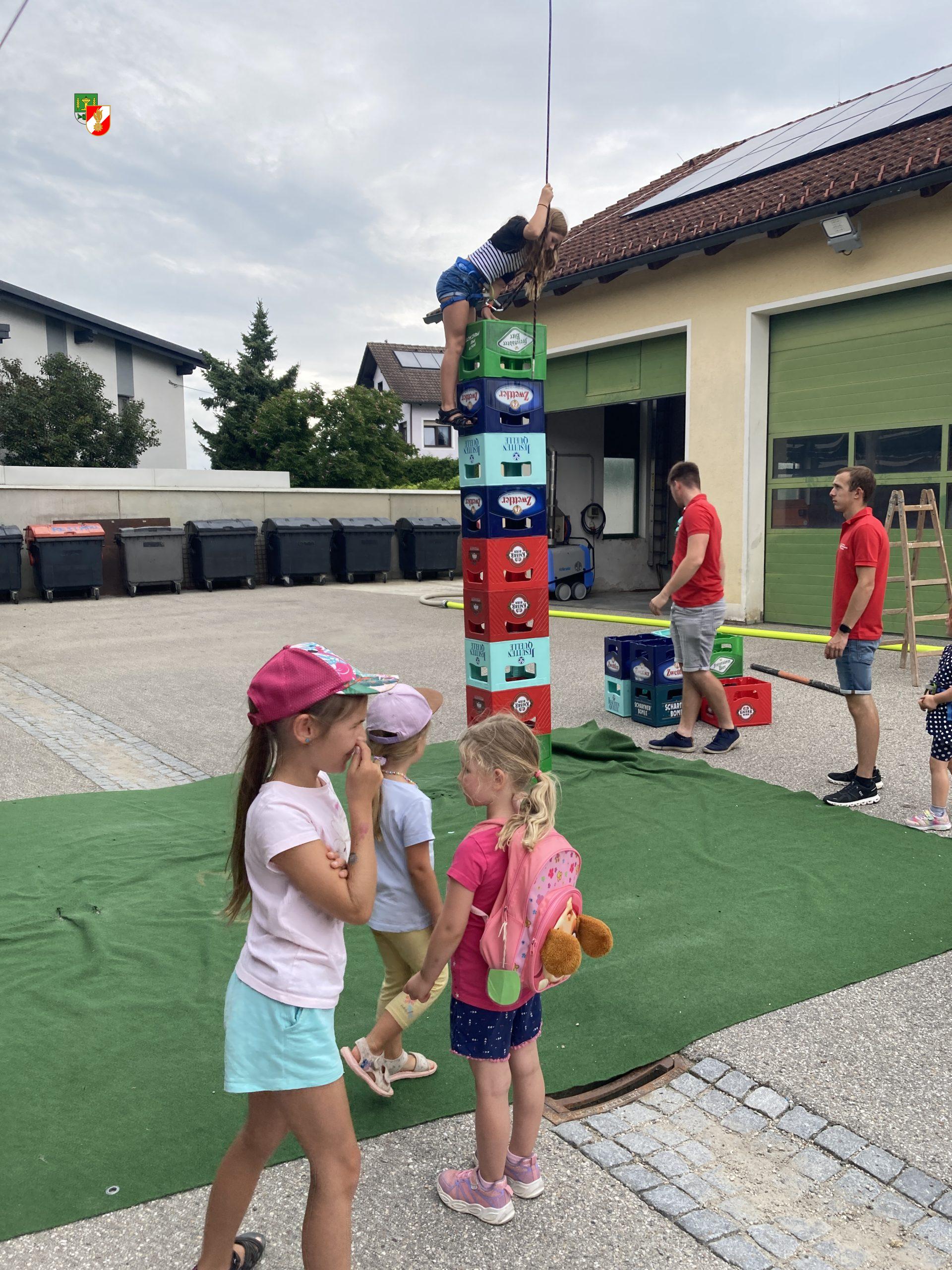 Es gab Rundfahrten mit den Feuerwehrautos und natürlich auch eine Spritztour mit dem Feuerwehrboot auf der Donau. Beim Donaudamm gab es einen Hindernisparcour den die Kleinen bewältigen mussten. Als kleine Pause zwischendurch wurde beim Bäcker Hanl in Au ein Eis spendiert. Bei den wasserführenden Armaturen konnten verschiedene Strahlrohre, die Kübelspritzen und das Hydroschild ausprobiert werden. Im Hof hinter dem Feuerwehrhaus wurden noch einige Spiel wie Wasserfußball und Kistenklettern gespielt