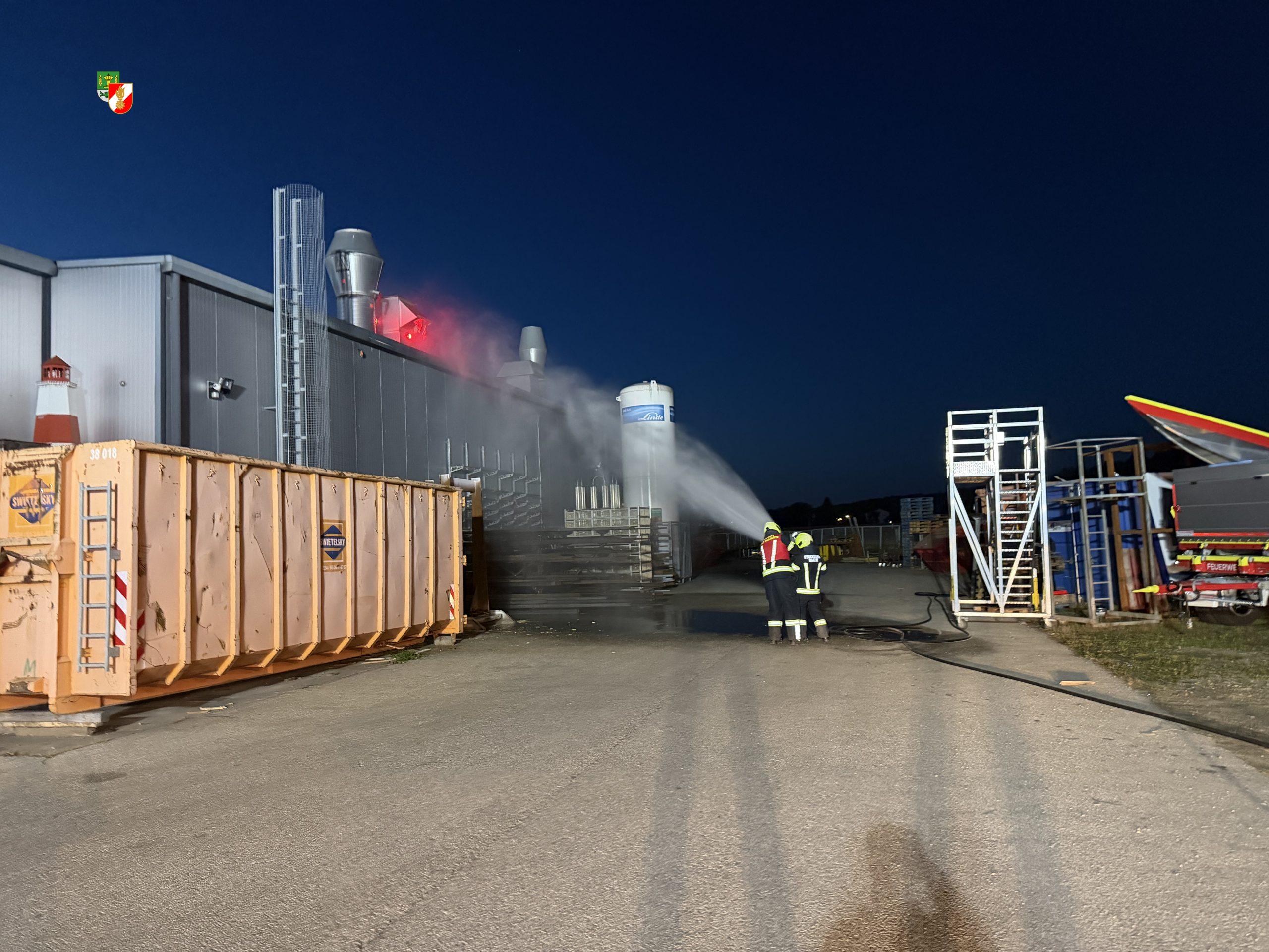 Nach Erkundung unseres Einsatzleiters wurde ein Brand in der Abgasanlage der Lackiererei festgestellt. Aufgrund der Verrauchung in der Halle, mussten mehrere Atemschutztrupps zur Brandbekämpfung und Personensuche vorgehen.