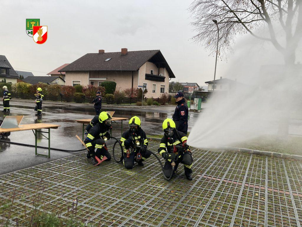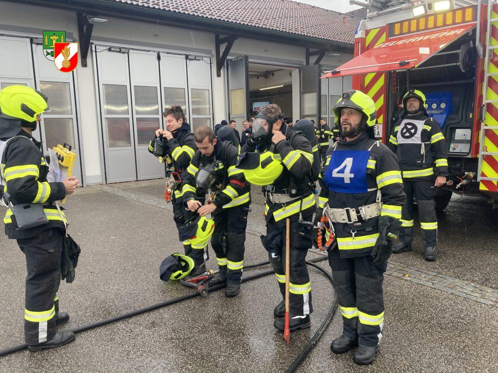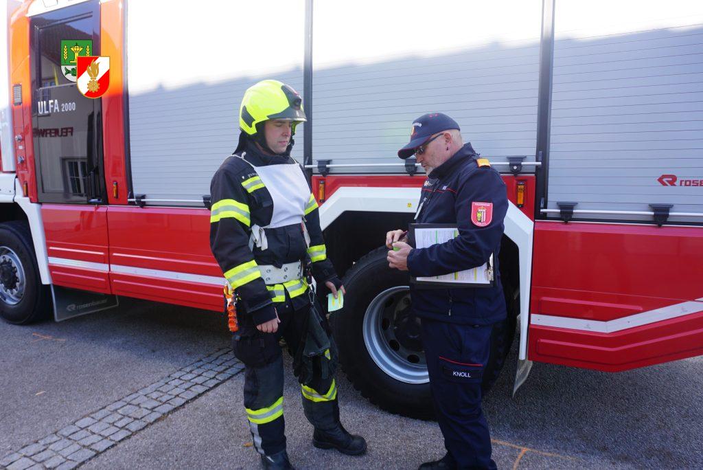 Am 24. und 25. Oktober haben 6 Trupps unser Feuerwehr das Branddienstleistungsabzeichen absolviert. Insgesamt 40 Kameraden, 11 in der Stufe 2 Silber und 29 in der Stufe 3 Gold. Die Männer bereiteten sich 2 Monate lang auf dieses Leistungsabzeichen vor. Die Prüfung besteht aus 3 Teilen, zuerst die Gerätekunde, bei der sie unter Beweis stellen mussten, dass sie unser Tankfahrzeug ULF-A in- und auswendig kennen. Die genaue Position jedes Geräts muss am geschlossenen Fahrzeug auf eine Handbreite genau gezeigt und anschließend eine Frage aus dem Feuerwehrdienst beantwortet werden. Zweiter Teil ist ein Brandeinsatz (Heckenbrand, Flüssigkeitsbrand oder Zimmerbrand) der möglichst Fehlerfrei abgewickelt werden muss. Und schließlich eine Zusatzaufgabe bei der die Trupps Gerätschaften verschiedene erklären und in Betrieb nehmen müssen.