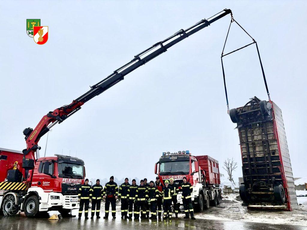 Ein großer Dank gilt dem Technischen Zug der FF Steyr mit HBI Markus Schaumberger und seinem Team, der uns das fachgerechte Anschlagen von LKW Achsen und Fahrzeugrahmen näher brachte.